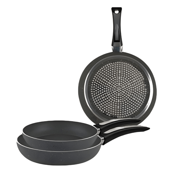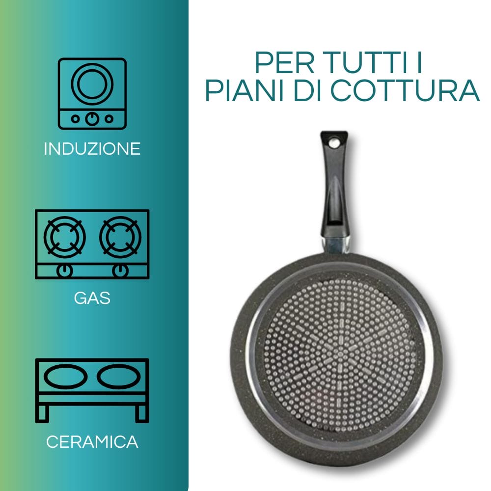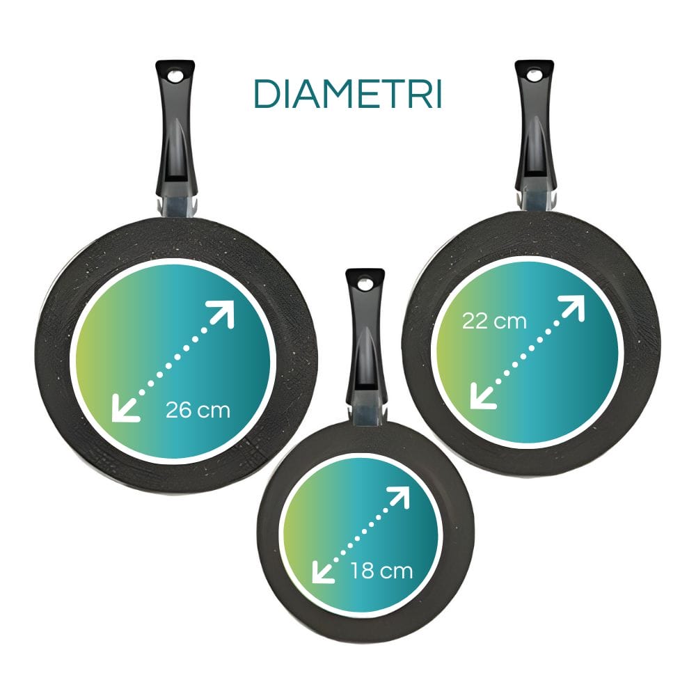 Set di 3 Padelle Antiaderenti per cottura classica e a Induzione - Le 3 padelle hanno i seguenti Diametri: 18, 22 e 26 cm