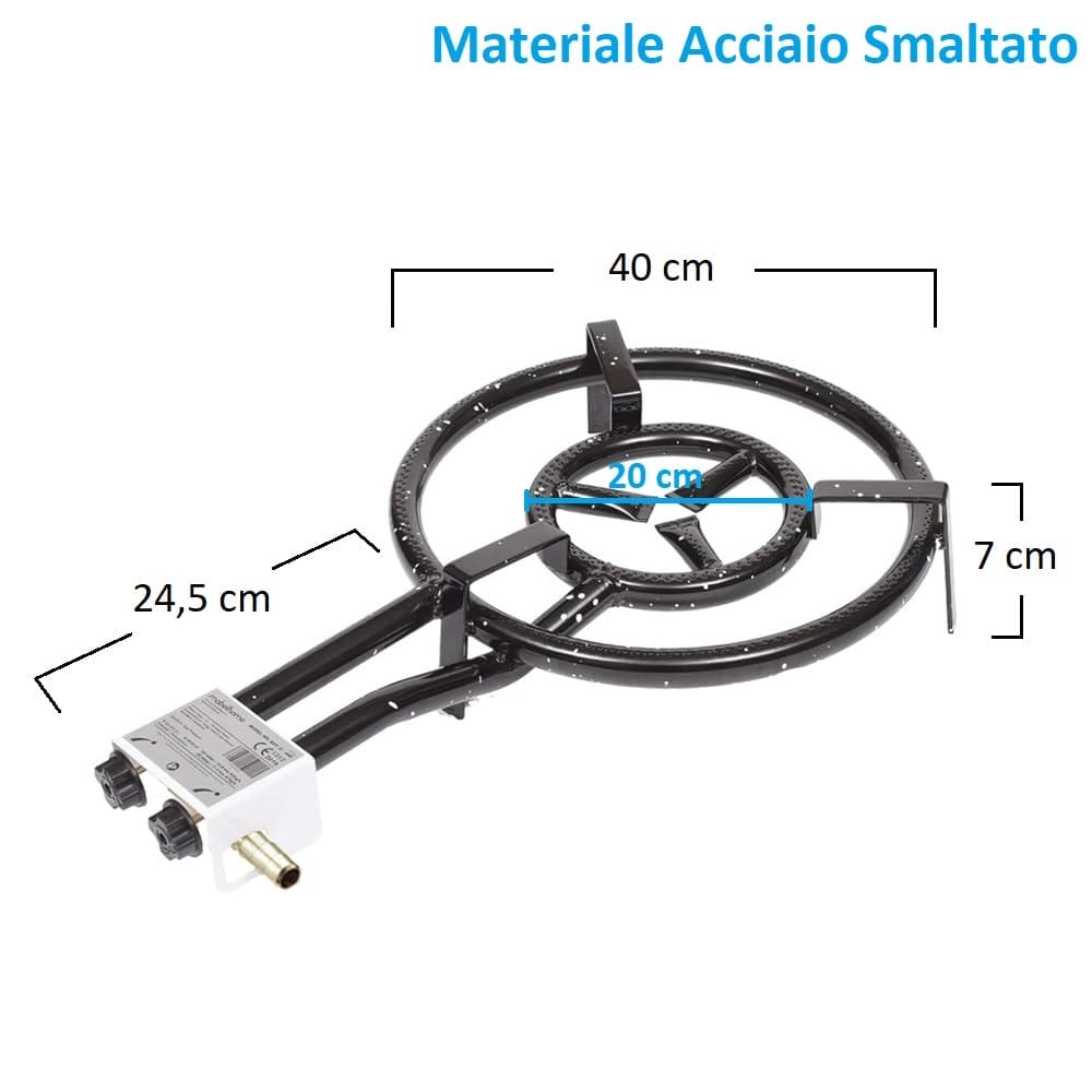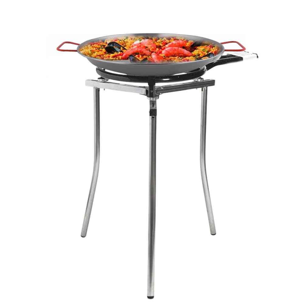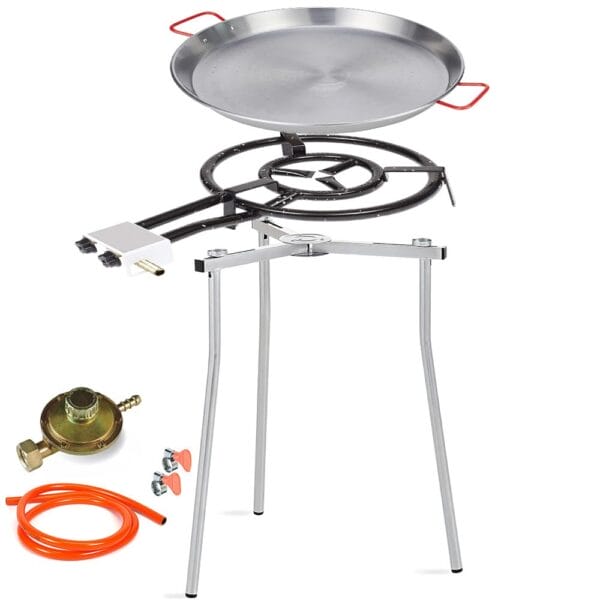 Set Paellera con Treppiede regolabile, padella per paella da 46 cm, Bruciatore a Gas da 40 cm con 2 fuochi e un regolatore di pressione