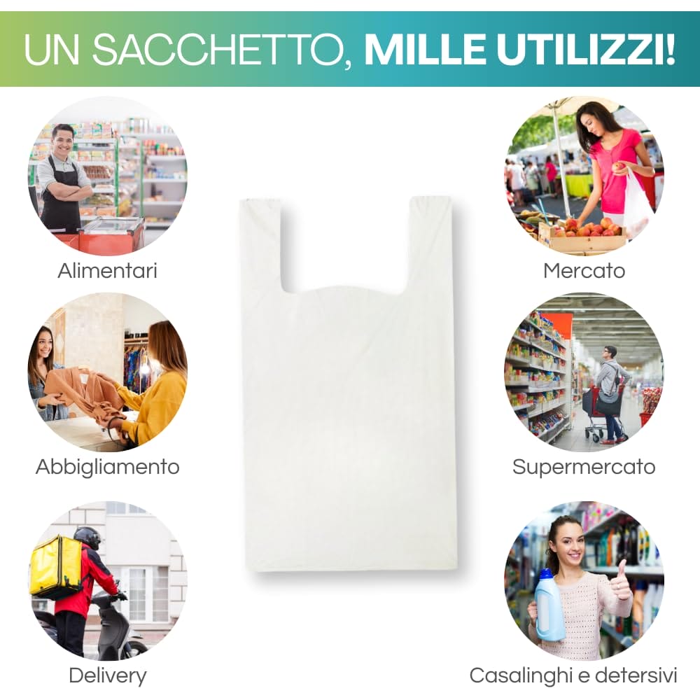 Le Buste Biodegradabili dalle dimensioni ridotte sono conformi alla normativa EN13432, al 100% biodegradabili e compostabili. Le Shopper hanno una grammatura consistente che le rende resistenti, favorendo il trasporto del loro contenuto evitando spiacevoli inconvenienti legati alla rottura di esse.