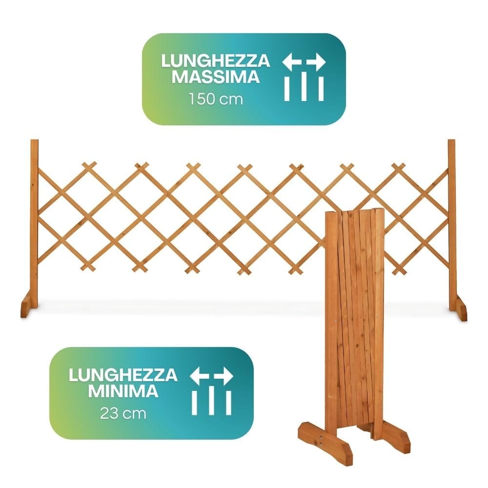 Traliccio estensibile per rampicanti in Legno di Abete da 150x90 cm - Staccionata con diametro 8 mm