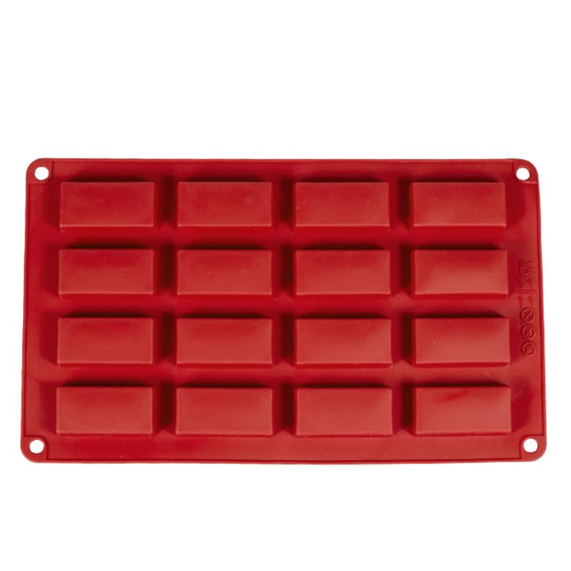 2 Stampi per Cioccolatini in silicone rosso da 16 porzioni mis 30,5x18x1 cm - Stampini rettangolari in silicone antiaderente per dolci