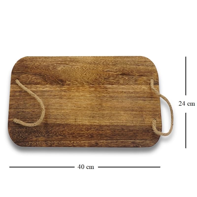 Tagliere Rettangolare in Legno Naturale con 2 Manici in Corda - Misura 40x24 cm e Spessore di 2 cm - Tagliere Salumi per servire Aperitivo, Finger Food, Antipasti