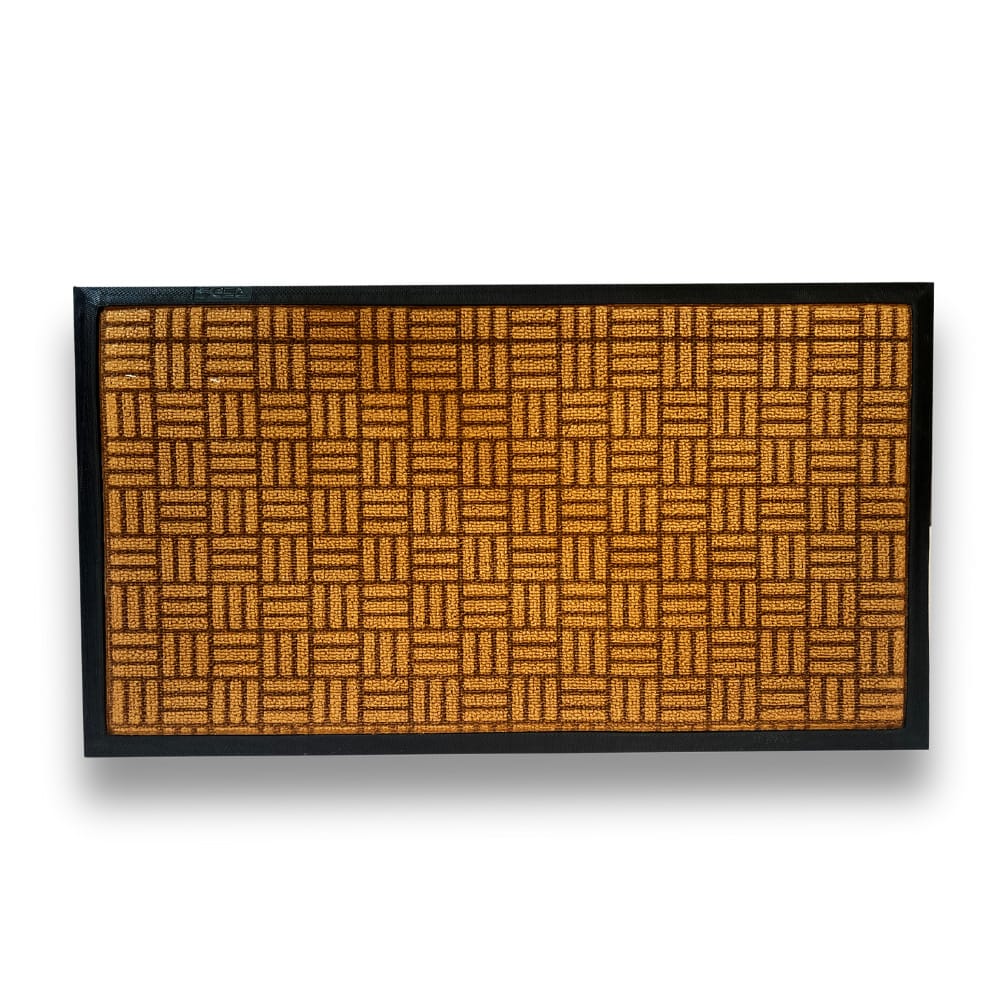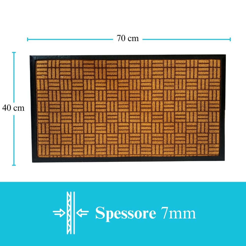 Zerbino in pvc corrugato e polietilene, misura 70x40 cm, asciugapassi con bordino, spessore 7 mm - Marrone trama scacchi
