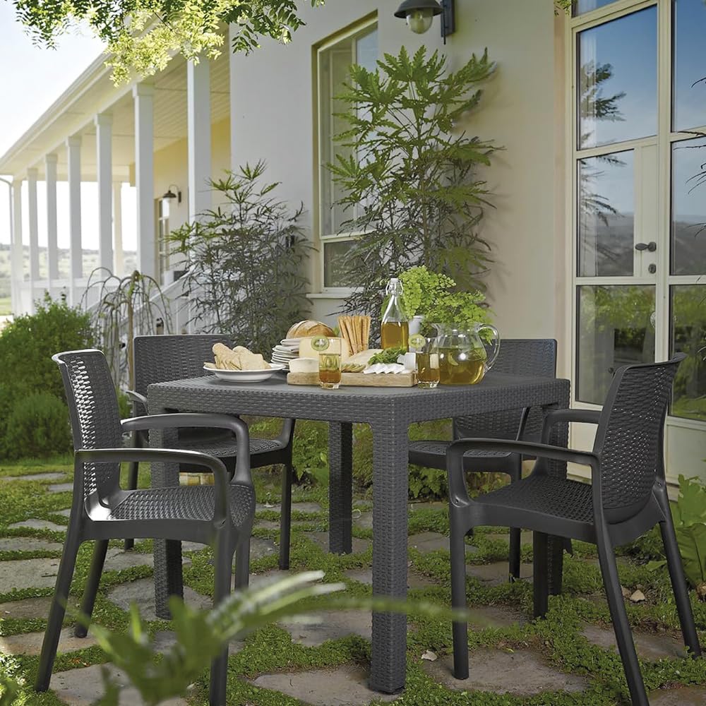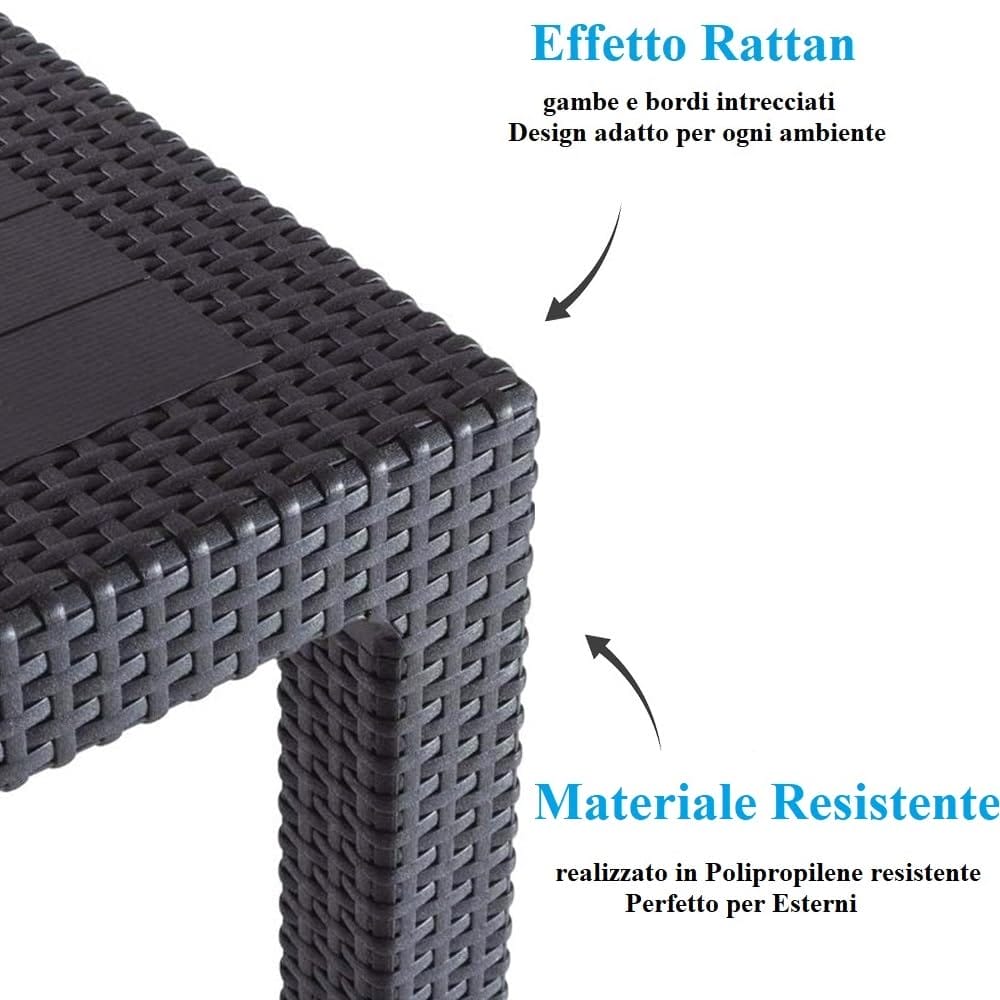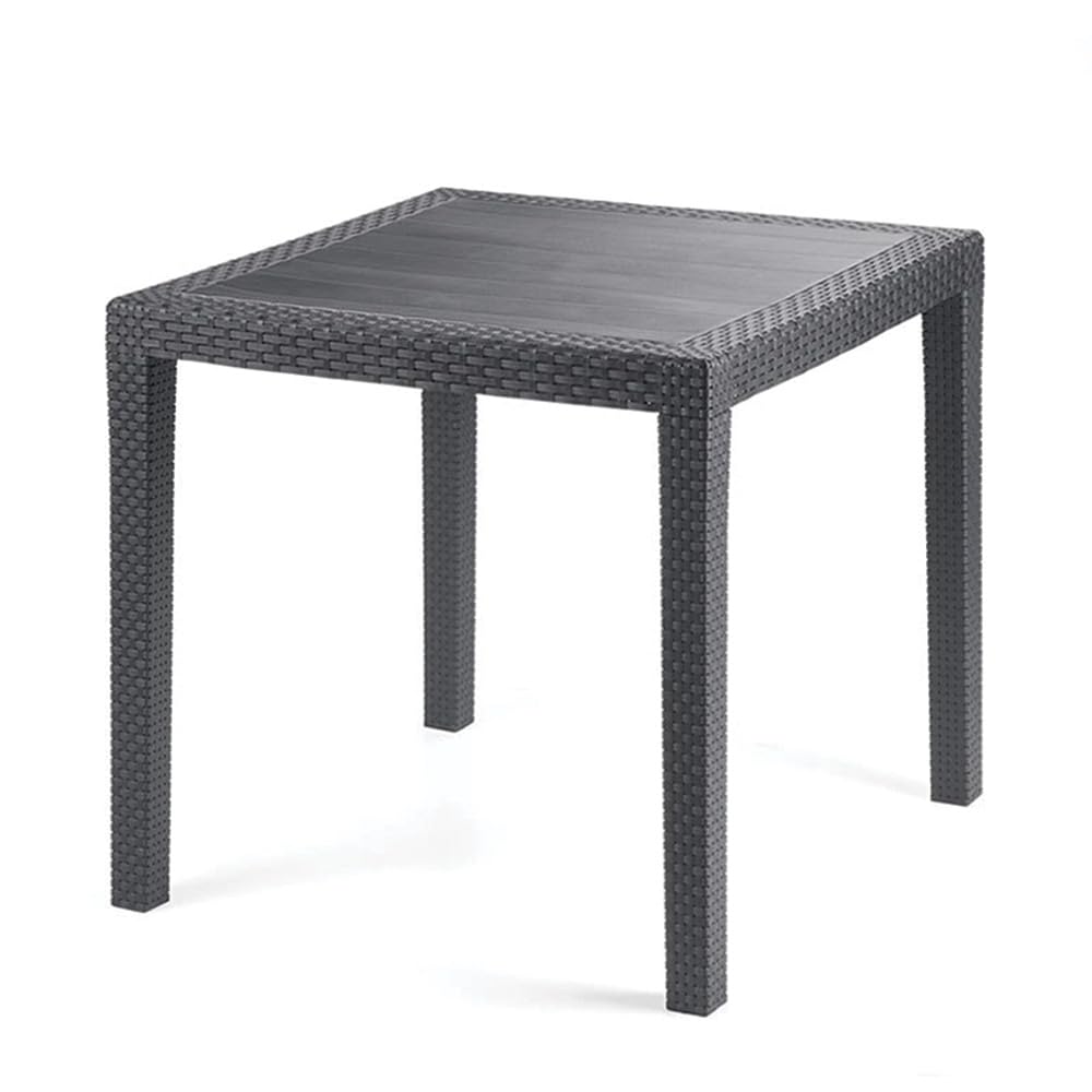 Tavolo quadrato in plastica da 4 posti - Misura 79x79x72 cm - Tavolino da giardino Antracite con gambe effetto rattan