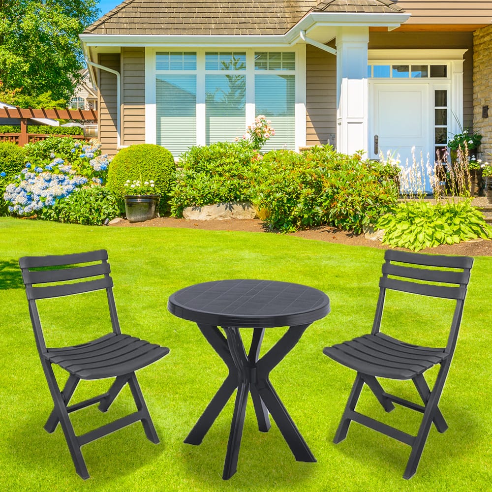Tavolo rotondo in plastica rigida da giardino - Diam. 70cm Altezza 72cm - Tavolino Antracite da campeggio salvaspazio e facile da riporre, per esterno ed interno