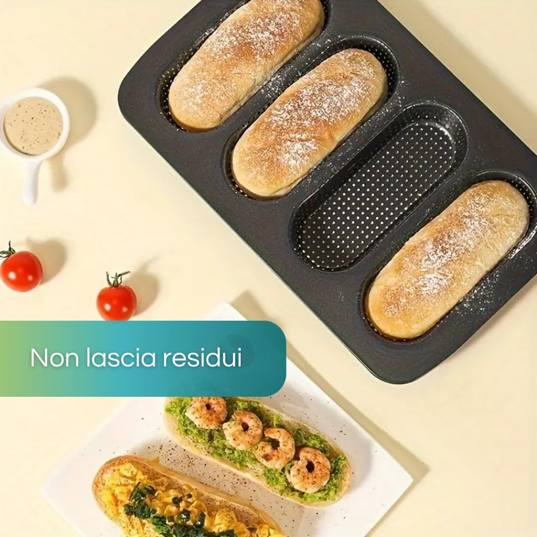 Teglia forata per panini e baguette 4 Stampi da 7×17 cm