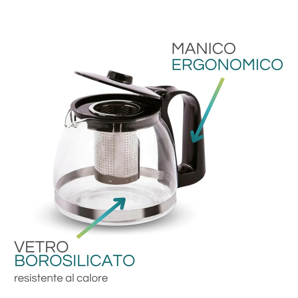 Teiera in vetro con infusore, coperchio e filtro estraibile - Misura 11x10 cm e Capacità 700 ml - Teiera in vetro da fuoco adatta per piano cottura