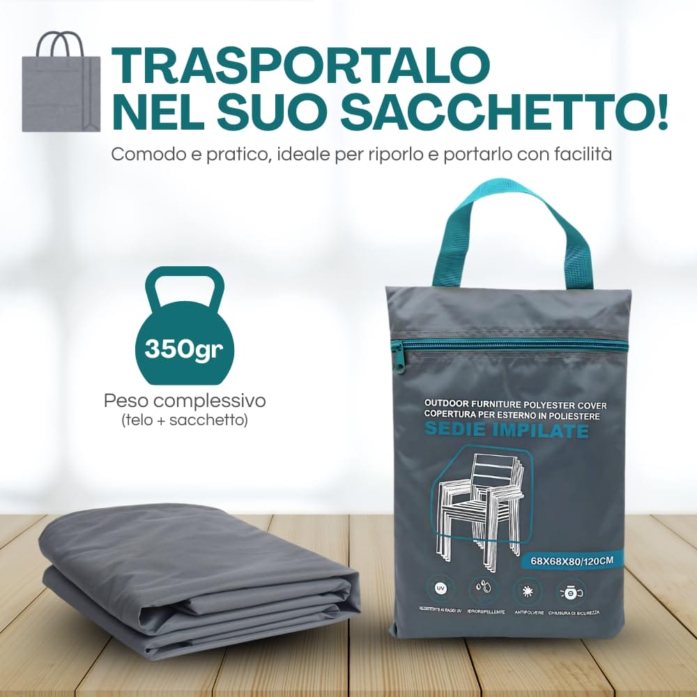 Telo copri sedie giardino grigio da 68x68x120 cm