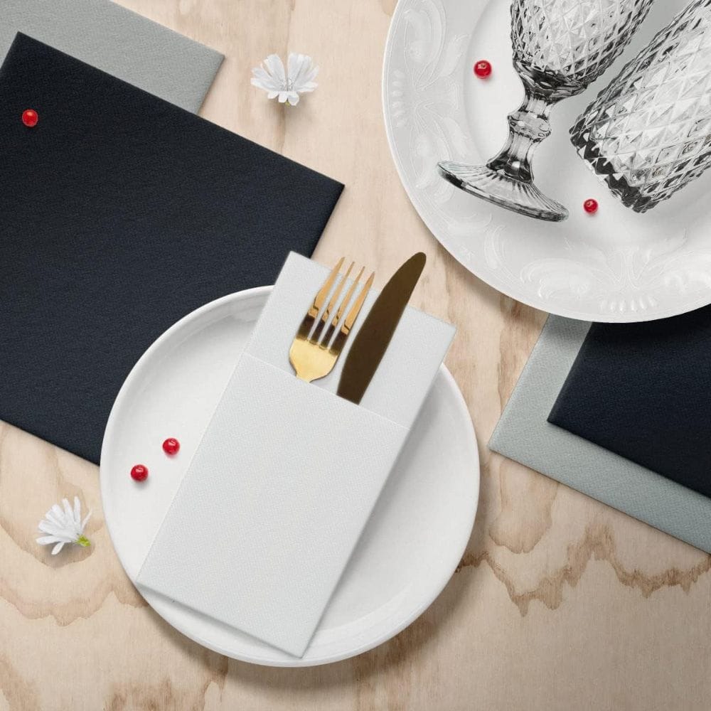 Il tovagliolo portaposate monouso in Airlaid con tasca, con