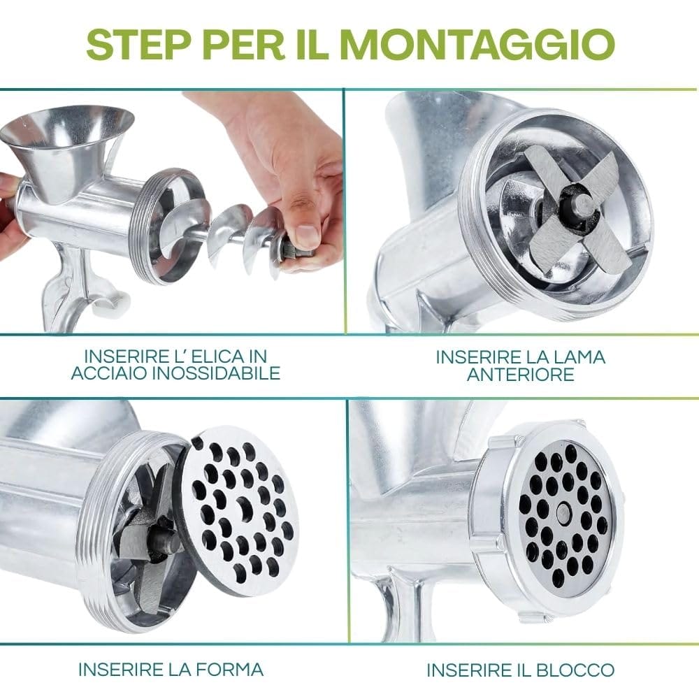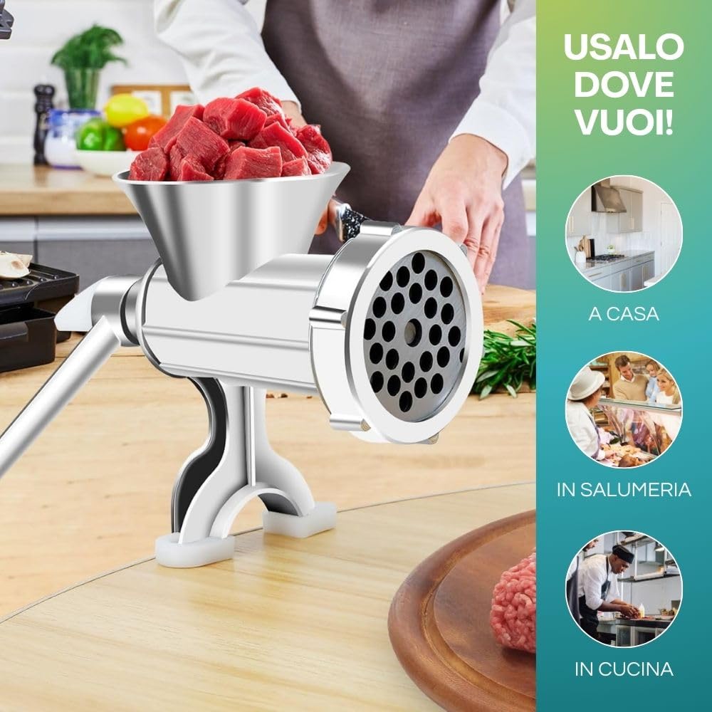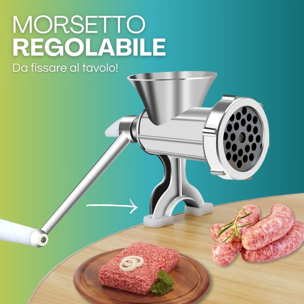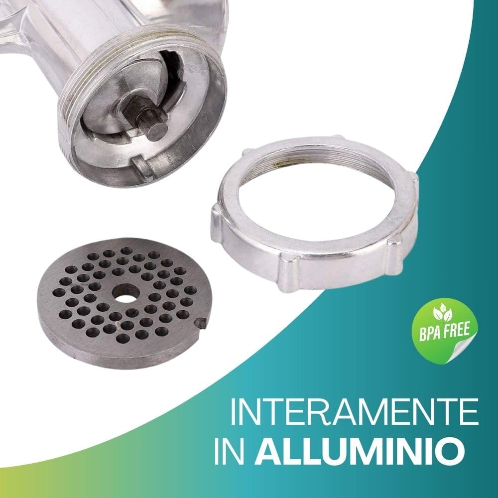 Macchina Tritacarne in alluminio con leva - Insaccatrice manuale con morsetti, per carne e verdure – Uso domestico e professionale