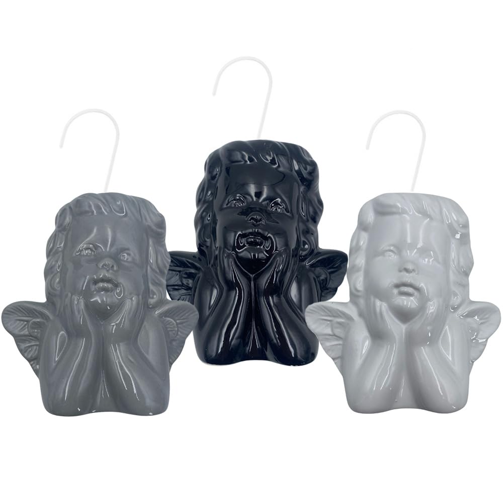 Set 3 Evaporatori d'acqua per termosifoni - mis. 14x4,5x14 cm - Umidificatori termosifone a forma di ANGELO e gancio a S - Colore bianco, nero e grigio