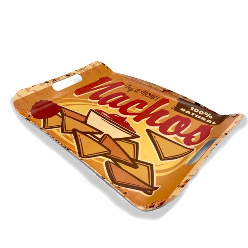 Vassoio da portata vintage rettangolare in melamina - Misura 41x28x2,5 cm - Piatto infrangibile con grafica Nachos per aperitivo, colazione, ristoranti, fast food