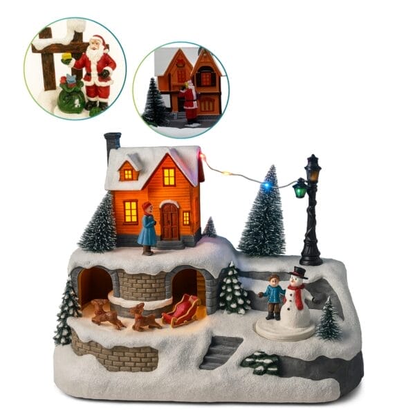 Villaggio di Natale con trenino o renne - Misura 23,5x16x17 cm - Giostra di Natale con luci e movimento con dettagli assortiti